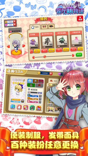 《餐厅萌物语》是一款二次元风格的模拟经营及养成手游,融合了大量时下流行的动漫元素。在游戏中你将作为店长,在萌萌的小助理陪伴下经营你的萌娘餐厅,从烹饪、研发、布置餐厅,到雇佣员工、宣传、处理外卖订单,所有事务均由你亲自安排,还可以和身边的小伙伴们进行丰富的社交活动。 游戏特点: 一、全新的二次元模拟经营 在你的专属餐厅中开拓新天地!新系统。新玩法带来传统模拟经营的重大突破,清新的日系Q版画面绝对让你萌到爆,一起来虚拟世界中感受ACG的现实吧~ 二、近百位人气动漫角色 上神大人、看板娘、电波少女、邪眼系萝莉任君挑选,丰富的养成互动元素让你和最爱的角色零距离接触,还有几百种原汁原味的动漫服饰随意…