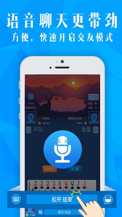 独“竖一帜” ,竖屏-单手操作! 唯我应用风,清爽-久战不乏! 好友随时约,高手-不再寂寞! 省流量,玩法多,经典、癞子、炸弹,一样不缺! 社交棋牌新玩法,打造史上最壕斗地主! 让玩家单手就能轻松享受竞技游戏快感!游戏多重精彩玩法完美呈现:最纯正的经典玩法,最刺激的百变癞子玩法,还有随时随地对战,零流量消耗的超炫单机玩法,都能让你乐享其中!