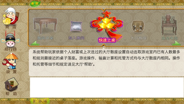 Bilingual version for Real Chinese Mahjong, please see English description for detail. 茶馆门口的‘游戏说明’和游戏大厅的‘帮助’里有详细游戏指南,大部分用户疑问都可从中得到答案。仍有困惑的朋友请不要客气,随时与客服联络(信息见下或app中‘关于我们’)。 网络篇服务器接收到一些非法充值申请均已驳回。茶馆游戏都是丰俭由人的,用户即使不充值我们也欢迎您来玩。因非法充值未被接受对茶馆有意见或给差评的,恕我们不再提供服务和解释,特别严重的将会收到封号的处罚。相信广大正版用户都能体谅茶馆的立场并反对这些错误的行为。…