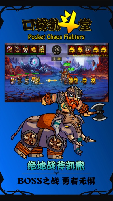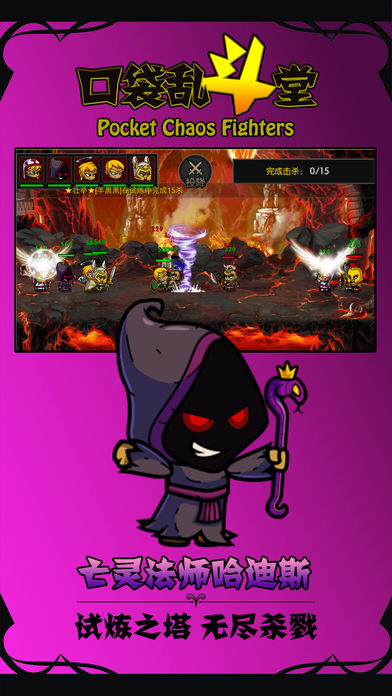 《口袋乱斗堂》是一款英雄大乱斗题材的手游。打造地表最强战队,不同职业的搭配尤为重要。游戏玩法新颖且丰富,关卡冒险,勇者试炼,巅峰竞技场,深渊探险,世界BOSS战斧等你来挑战,还有更多高阶玩法,你还等什么呢! ----简单易操作,3秒上手,3分钟上瘾 ----复古卡哇伊动态卡牌人物,精致画风,高品质画面表现 ----超多职业,自由搭配策略战斗 ----近战英雄:侏儒,原始人,海盗,蛮夷,女剑客 ----远程英雄:光明使者,冰法师,精灵射手,忍者,牧师 ----稀有近战:斯巴达,武僧,圣剑,狼人,圣骑士 ----稀有远程:亡灵法师,吟游牛仔,丘比特,风法师,女巫 ----史诗英雄:战斧...... ----最强福利回馈:每小时送、签到送、闯关送、更新送、节日送......数万钻石,不花钱也能畅快玩!良心手游外加史前最强福利回馈 玩家QQ交流群:515183705(加群送礼包)