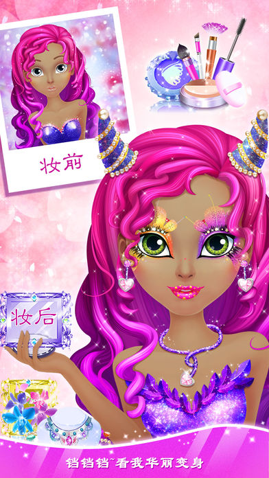 一场梦幻公主派对即将拉开帷幕,你准备好了吗? ^_^关注Libii官方微信公众号:libiigame 随时掌握游戏动态、活动资讯^_^ 集时尚、华丽、梦幻、精致于一体的公主派对,需要每个嘉宾盛装出席。不甘于在茫茫人海中继续平凡低调下去,想要在名媛云集的派对上艳压群芳,一个出众的妆容必不可少。闪亮的腮红,炫色的美瞳,魅惑的眼影……高贵优雅大家闺秀,还是精致细腻小家碧玉,一切全凭你做主。再挑染一抹别致的发色,穿上炫彩华服,戴上美丽的首饰,准备出发吧!噢~还有,出发前别忘了拍张照片留作纪念,照片里的自己原来是如此迷人呐! 游戏玩法: 打开游戏,进入化妆界面。先为自己选择一个最适合自己的肤色吧,白皙的肌肤粉嫩动人,古铜色也别有一番韵味。接下来,根据自己的肤色和气质依次画上腮红、美瞳、眼影、睫毛、眉毛、口红。要去出席派对,妆容自然不能太过日常。每个化妆步骤都有很多颜色和样式供你选择,不过要使派对妆容做到出众而不夸张,那着实是需要费一番功夫的!上述步骤都完成后,若还觉得不够过瘾,还可以为自己选择一个独特的脸贴,或可爱,或炫酷,或诱人。接着,选择与妆容相配的发型,再搭配精致的首饰与华美的礼服,嗯~一切准备就绪!最后,为此刻的自己拍张照片吧,照片的背景随你选择哟! 游戏特色: - 海量妆品选择,个性妆容随心打造 - 点击选择妆容,你的美丽你做主 - 精美首饰及服装,为妆容锦上添花 - 照片背景多变,为你留下精彩瞬间 关于我们: Libii Game一直致力于为女孩们打造时尚靓丽并充满想象力的互动性游戏,而今已拥有超过四亿的下载量并且仍与日俱增。我们将不懈努力为大家创造出更多丰富有趣的内容。 更多产品资讯,请访问官方网站:www.libii.cn 如需帮助,或者有任何想法、建议,请随时联系我们,邮箱地址:WeCare@libii.com 欢迎关注我们的官方微信公众号:libiigame 用户须知: 这个游戏的下载和使用完全免费,其中一些基本物品也可以免费使用,但是请注意,有一部分附加物品是需要您购买并付费之后才能解锁使用的,因此,如果您不想使用这类附加物品,也为了防止意外购买的纠纷,请您在设置中关闭购买应用软件这一项,谢谢您的配合。