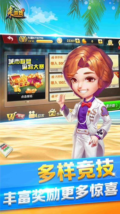 来游戏官方全新力作,引领棋牌手游新时代! 这里有性感的大胸姐,帅气的长腿欧巴,激萌的洛丽塔 只要你喜欢,都可以培养升满星!! =====游戏简介===== 来游戏麻将全集,内含血战到底、血流成河、武汉麻将、卡五星、天津麻将、广东麻将、南宁麻将、大众麻将、二人麻将、斗地主。精选各地最地道的本土麻将玩法,加上本地方言配音,一定让你爱不释手! =====游戏特色===== 【包房】新增特色包房,灵活创建房间,邀请好友竞技一决高下 【回放】边录像边玩牌,牌局回放功能让你在回顾牌局的时候还能炫耀牌技 【比赛】更多赛事活动搭配精美礼品,用惊喜回馈用户 【角色】结合手游经典RPG,带着你的MM上牌桌,享受暴击快感 【宝箱】多样钥匙开启多种宝箱,欢乐多多惊喜不断 ====联系我们==== 微信公众号:laiyouxi 客服QQ/电话:4000051827