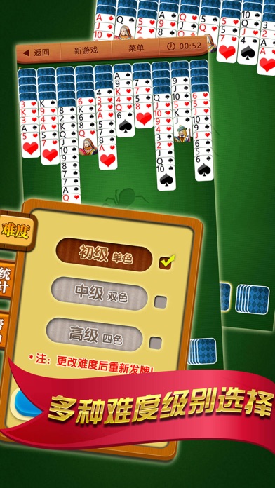 制作精美,秒杀一切的蜘蛛纸牌小游戏,快来试玩吧! 特色: - 单机挑战,智能统计胜负率 - 经典的撤销和提示两大道具帮助你顺利通关 - 多种难度选择,想玩哪种玩哪种