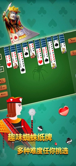 蜘蛛纸牌游戏全新上线,纸牌和益智相结合的经典游戏,具有规则简单,操作灵活等特点,试玩一下,多种纸牌玩法,一定能让你挑灯夜战,欲罢不能! 你需要利用自己的智慧解开牌局,游戏的目标是以最少的移动次数将牌面中的十叠牌以及待发的五组,共计八叠牌整理移除。当所有牌被移除整理到界面的左下方,游戏获胜。充满挑战,又可以获得无穷的乐趣,是你和朋友渡过闲暇时光的不二选择。 特色之处: · 三种难度选择,单色、双色和四色任你选择; · 自由横竖屏切换,想怎么玩就怎么玩; · 统计局数,让您对您的战绩了如指掌; · 纸牌玩法,蜘蛛纸牌玩腻了,还能换成其它纸牌玩法来放松一下。 充满挑战,又可以获得无穷的乐…