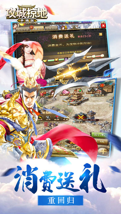 可曾想辅佐明君,匡济天下;或蓄势待发,自立为王。 可愿为一代雄主,御驾宇内;或匹马北望,仗剑天涯。 官渡暗战,赤壁烈火,三国群英严整待命! 文官武将,战策迭出,万里江山任你驰骋! 《攻城掠地》3.0.0版本强势来袭,集市资源上新品,让您每天省省省,千呼万唤御宝来,助您实力强强强,快来攻城掠地一起征战天下吧,下个乱世英雄就是你! 【联系我们】 官方QQ:800032234 官方微信:gongcld