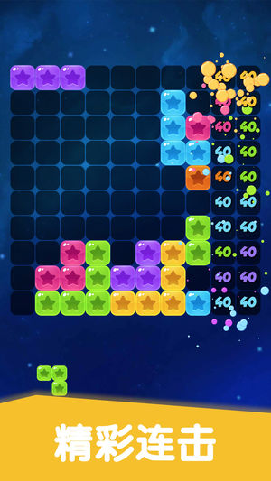 全新界面来袭!更好玩,更劲爆! 四种玩法: 1、传统的方块玩法,从上放降落的方块 2、创新的玩法,从下方将方块拖入方格 3、方块下落到底后3个同样的颜色的方块连在一起,则会消除 4、点击消除3个连在一起的同色方块 本游戏是一款引人入胜的益智游戏,玩法简单但有特色。简单易学且玩法有趣,是一款完美的手机益智游戏。 在这款让人入迷的益智游戏中,只需将模块拖放到屏幕中,在垂直和水平方向创建并消除整行模块,阻止模块填满整个屏幕。 你可以通过全球排行同你的朋友比赛! 没有时间限制,无需颜色搭配!用匹配的模块填满所有网格,快来享受这款益智游戏吧!