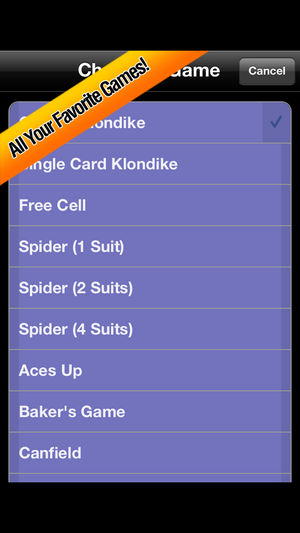 纸牌(Windows个人电脑纸牌)、蜘蛛纸牌、空当接龙、高尔夫接龙、金字塔和更多纸牌经典游戏已经收纳进这款出色的应用程序内。一经启用,就会给游戏计时,采用标准计分方式。每款纸牌游戏均带有玩法说明,教你如何玩,另显示高分和数据统计信息。 功能 涵盖你最爱的所有纸牌游戏,如纸牌(个人电脑纸牌)、蜘蛛纸牌、空当接龙,还有更多! 显示高分和统计信息。 选择纸牌图案和背景。 符合标准游戏规则。 带有每款游戏说明。 最优化视网膜显示图像。 游戏操作简单流畅。