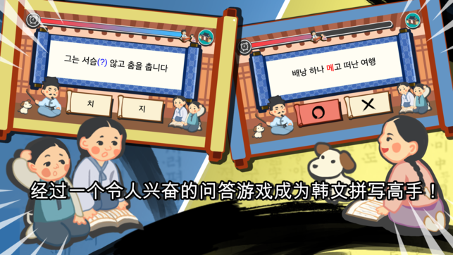 # 朦胧韩文拼写和间距现在将停止! # 经过一个令人兴奋的问答游戏成为韩文拼写高手! # 开放纪念66折(¥18.00 -> ¥6.00) - 系统一步一步地学习韩文拼写教育 - 要拧松混乱的拼写和间距解决测验 - 经过深入研究,通过OX问答证实技能 - 各种考试成绩的结果! # 强烈推荐 # - 人谁爱韩文和韩国 - 我们想给父母教孩子正确韩文 - 人准备能力的测试在韩国