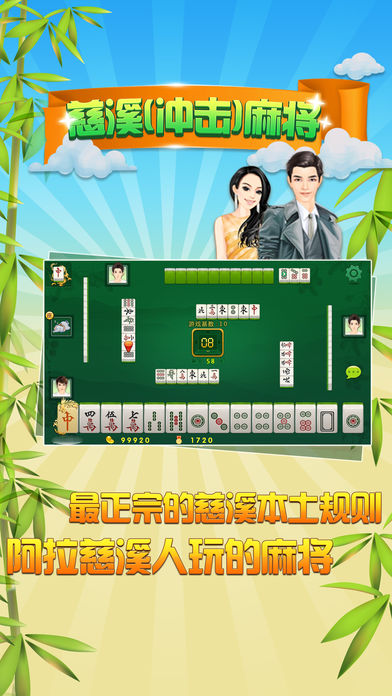 最正宗的慈溪麻将规则,阿拉慈溪人自己玩的【慈溪麻将】火爆来袭!!! 麻将规则完全符合慈溪本地规矩。冲击,关风向,十三幺,全缴,抛花....最纯正的方言配音,等你来体验. 让我们享受简单的快乐 官方客服热线:4008780666
