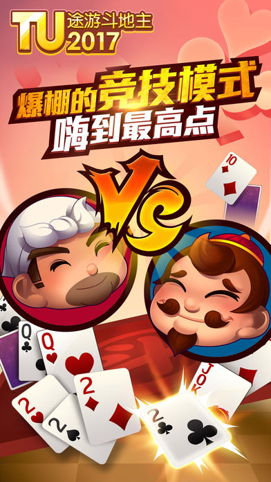 斗地主2017 《斗地主2017》是耗资千万全新研发的一款综合棋牌游戏,可参与全国斗地主大赛等多项比赛,奖品丰厚!新版本加强了好友、排行榜等功能,提升用户之间的交互体验。 【游戏特色】: 1)幸运转盘 每日签到领取幸运卡,可以免费抽取话费、金币、道具等奖励 2)新比赛赛制 全新arena赛制(1元赛)让用户每局游戏后立即获知结果,晋级或淘汰都不用等待,完全停不下来 3)新增小游戏 除德州、百人、大丰收等小游戏外,增加了保皇、中发白等受用户喜爱的游戏插件; 4)牌局任务 游戏任务全新调整,结算后看看进度,领取奖励吧! 【最新活动】: 1:全系圣诞活动即将登场 2:大波积分活动上线 3:精品游戏等您尝鲜 4:优化新人体验,大手笔新人奖励详见福利 特殊声明 本款游戏内道具仅适用于本游戏,不得出售和交易特此说明