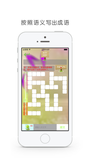 精彩成语填字 是利用空闲时间拓展成语知识面的一款手机游戏,共有100个关卡,1000多个成语,你可以可以向朋友求助困难的问题,一起合作不断过关! 玩法介绍: 1.通过给出的文字提示,写出成语。 2.完成率达到80%即可过关,并且开启下一关。 3.每天打开APP免费赠送答题提示。 4.和朋友一起,集思广益更好玩,更有成就感。