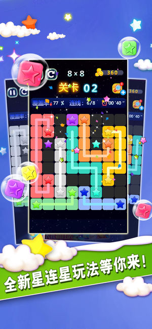 游戏操作简单流畅,单手也毫无违和感!主打益智休闲风,内容相当丰富: - 新增星连星玩法等你探索。 2个颜色相同的星星连接在一起,用连线和星星铺满整个屏幕即可。 - 经典玩法的重重关卡等你攻破。 点击两个或更多相同颜色的星星即可消除,没有时间限制,但每一关都有目标分数,达到目标分数就能进入下一关卡。如果过关前剩余星星数量少于10,还将获得额外奖励。 - 消尽玩法的三种模式等你挑战。 玩法与经典模式相同,不同的是需要将所有的星星消完才可进入下一关,爆竹小道具可助你一臂之力。 - 时间模式的分秒必争等你攀登。 60s看你如何挑战极限,让你瞬间明白怎样叫眼疾手快! - 拖动模式的自由玩法停不…