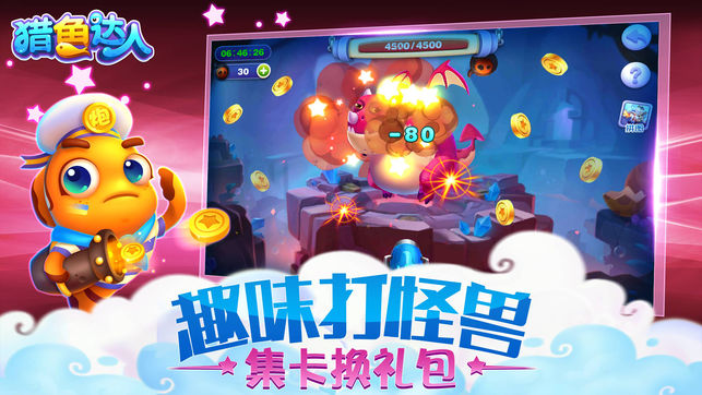 猎鱼达人游戏介绍: 1.放胆猎,放肆赢!腾讯革新正版2.0捕鱼手游大作! 2.在点击捕鱼的传统玩法上,完美融入水族箱、抓抓乐、俱乐部等多种自创趣味玩法! 3.闯关新玩法!更有超级BOSS等你来挑战! 4.全3D画面显示!效果更绚丽! 5.内设多人竞技比赛,海量金币奖励拿到你手软!