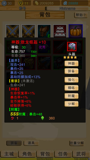 *前期随便打,那里红点点哪里,做20个任务,20级后兑换20级神器七星铠,装备强化到+10,强化石不够商店买,一下子就牛逼了(暂时的…)。 *铁匠铺有新装备,先打造一副套装和新武器,再去野外捕抓新坐骑,再去副本打新兵符。 *闯关选最高难度,打武将掉忠诚点数,解锁4个白色武将备用,分别用刀,弓,剑,枪,不怕得到的新武器没法用。 *有新任务,简单的先清掉,任务做着做着等级就上来了,有时候会卡在某个比较难的任务,先提高战力再去完成。得到任务点数可以兑换vip钻石,宝物,神器等等。 *铁匠铺有新装备,闯关刷材料一件件做出来,就算过时用不上也可以解锁图鉴获得钻石奖励,还有图鉴大礼包! *打不过高级武将,…