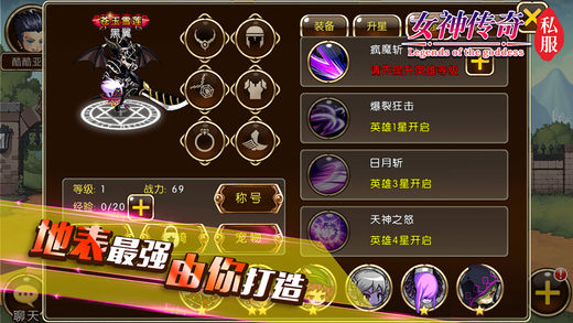 【官方QQ群:493466005(入群送礼包)】 《女神传奇私服》是官方正版授权私服手游,登陆即可领取20000钻石,价值2000元。 【游戏简介】 《女神传奇私服》是一款以Q版英雄乱斗为背景的横版动作卡牌+RPG策略手游,手控技能,极速回合,彻底告别漫长的无脑战斗! 完美的装备养成系统,超炫的翅膀,超酷的坐骑,超萌的宠物,以及称号系统。游戏还拥有非常丰富的玩法,关卡冒险,勇者试炼,巅峰竞技场,BOSS战,公会战,副本,跨服战,还有更多高阶玩法等你来挑战。 【游戏特色】 系统操作:指尖触控,简单易上手,自由选择。 懒人模式:没有复杂的操作,轻松游戏享受超多玩法。 战斗系统:全新华丽技能,自动战斗,普攻怒技任意搭配。 BOSS系统:每天不仅有全服世界boss入侵,而且每个副本守关BOSS都是精心设计。一大波BOSS来袭,满足玩家征服欲望。 多人互动:跨服战,加入公会为了兄弟为了家族而战,个人PVP,世界boss、届时神秘龙城也将开启。
