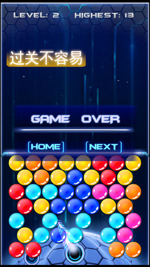 这不是一款普通的泡泡龙游戏,这是一款俗称噩梦级别的泡泡龙游戏。 游戏中你要尽量避免错误的决策,尽量让你打出的每一个泡泡都物尽其用。 在一个回合中,只要你打出的泡泡没有能成功的消除其他泡泡,压力器就会自动下压,直到你失败为止。 利用好你灵活的大脑,犀利的眼睛,灵巧的双手,向这个噩梦般的泡泡龙游戏发起挑战吧! 据说能玩过十关的,都是眼疾手快头脑灵活的游戏达人呢!