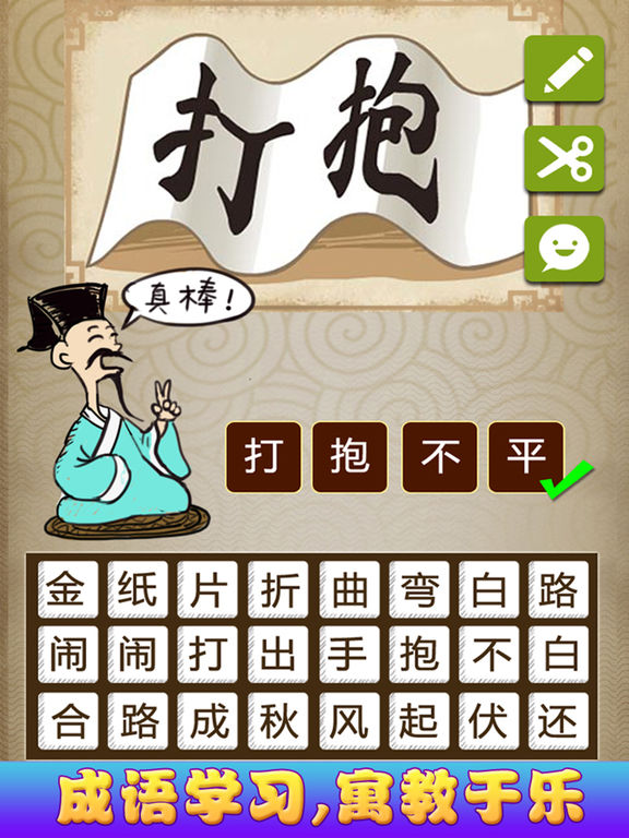 这是一款益智休闲成语学习应用,通过看图猜成语来学习成语,寓教于乐,开心学习成语解释、了解成语典故和出处,让学习成语从此不再枯燥。 猜成语汇集了上千个经典的成语,让你在汉字王国的海洋里尽情享受中国博大精深文化的熏陶,做一个真正的中华学霸。 您可以通过微信微博求助和挑战你的朋友们,看看谁是成语脑力达人。