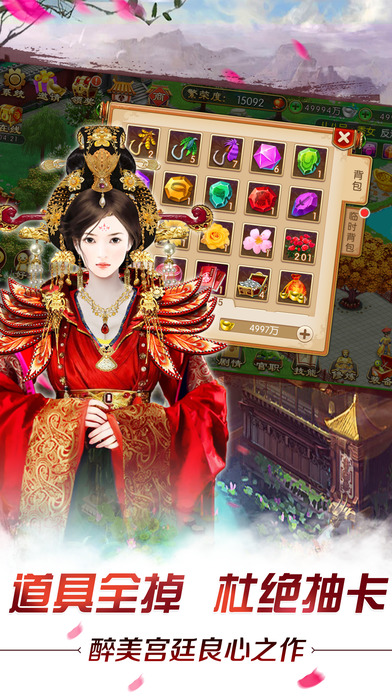 【游戏简介】 千载宫闱深,独泣羽巾陶。一入宫门深似海!游戏果动首款宫廷手游《我的宫廷》诚邀各位小主开启您的宫廷之旅! 《我的宫廷》是首款DIY自主建城玩法宫廷类手游,游戏以自由建城玩法为特色,依托古色古香的唯美宫廷世界为背景。炫美的时装,精彩游戏剧情,惊心动魄的后宫争斗,将给玩家带来超爽别样的宫廷生活体验。 【游戏特色】 ※※商城道具 全部掉落——最美宫廷良心之作※※ 商城出售的所有道具,均可通过日常任务、玩法或副本等途径获得,能够满足更多的玩家对游戏道具的需求。 ※※自由建宫 全新体验——专属后宫自由建造※※ 游戏内的各类建筑、装饰物的位置可不同方位的摆放,树木的砍伐,杂草的清除,石碓的引爆等,通过自由建城玩法,任意打造属于自己的个性宫廷。 ※※醉美妆容 艳冠群芳——绝美时装任意搭配※※ 特色DIY装扮,华美的后宫,绝色的佳人亲手装扮。游戏内各种古风唯美的服饰可供选择。 ※※情牵派系 梦筑宫廷——派系牵情宫廷筑梦※※ 依托强大的派系,可额外获得个人BUFF属性加成,派系特有的副本和志同道合的战友及专属频道,让您的宫廷生涯不再显得枯燥、沉闷。 ※※虐心宫斗 步步惊心——后宫争斗虐心体验※※ 请安,掌嘴,皮鞭,扎针......这些古代礼仪,刑法,玩家在这里都可以尽情“享受”到,宫斗特效更是炫美逼真,让您体验别样的宫斗虐心体验。 【玩法简介】 ※推到皇上:参与全服挑战皇上,将之推倒可获得丰厚银两和物品奖励。 ※强盗刺客:分为物理和法术攻击,搭配合理的随从击杀后可得到丰富经验和银两。 ※官品:由三大体系:魅力值,繁荣度,武举实力来决定官职大小,不一样的官品结算方法。 ※探宝:别样的九宫格玩法,同时可获得丰富的道具奖励。 ※进贡:收集不同的贡品,获得超稀有道具。感受古代宫廷进贡特色 ※礼单:完成不同礼单任务需求,奖励也不相同,全部完成可额外获得稀有道具奖励。 ※建筑:精美的装饰,逼真的宫廷建筑,别样的种植采集,随心所欲的构造专属宫廷。 ※排行:竞争激烈的各种数值排行榜,展示您傲视宫廷的王者风范。 【玩家好评】 ※别出心裁的宫廷题材手游,操作简单,值得一玩。 ※宫廷题材中个人感觉目前是最佳选择,尤其是自主建城,在宫廷类游戏里很新颖,游戏里的坑也很浅,我会一直坚持下去,顺便找志同道合之人一起玩耍!