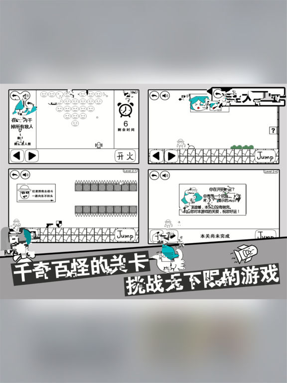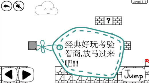 手绘玛丽大冒险,史上最虐心的超级玛丽小游戏。 在拯救公主的路上,一百种死法花样翻新,高潮不断。 如果不能把你的IQ玩到负值,经典好玩,其乐无穷! 温馨提示:千万别相信游戏里的每一句温馨提示。