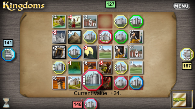 Kingdoms is a clever tile-laying game by top eurogame designer, Reiner Knizia. In a medieval kingdom, you must scout out resources and hazards to decide where to build your mightiest castles. Commit too soon and you might discover a tribe of ogres right next door, but commit too late, and your oppo…