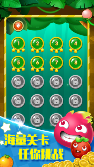 水果连连看是一款经典的消除益智游戏,受到千万玩家的喜爱。 经典的游戏玩法,美味诱人的新鲜水果,让你垂涎欲滴,爱不释手,快来体验消除的极致快感! 新版具有多种游戏模式,海量关卡! 单机版不用网络,不要流量,随时随地想玩就玩! 画面清新可爱,场景欢快明丽,水果美味诱人! 全球排行榜,来和连连看高手一比高下!