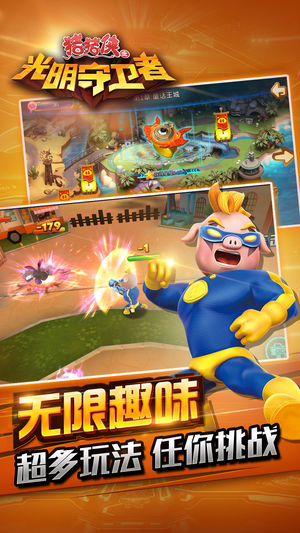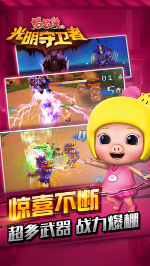 《猪猪侠之光明守卫者》,一款Q萌又热血的即时格斗手游!国产优质动画IP,Q版卡通,玩法经典,休闲又刺激,上手容易,小白随时随地来一发!画面精美,武器高能,技能酷炫,赶紧过来化身为勇闯魔界的勇士吧,与猪猪侠一起,并肩作战,体验这酣畅淋漓的战斗激血感! 猪猪侠之光明守卫者是一款3D的移动射击游戏,游戏拥有猪猪侠正版IP授权,在国内动漫市场拥有非常高的人气,在游戏吸量方面,属于一线IP;游戏主场景的人物切换采用陀螺仪式的旋转切换,逼格极高;战斗场景采用45°视角,战斗方式包含了富含格斗元素的近身搏斗与最流行的移动射击元素,将两者融合在一起的可玩性极佳。