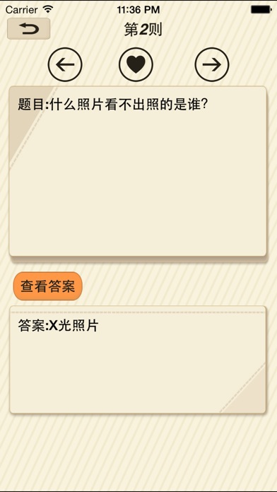 “脑筋急转弯” 不仅是知识的源泉,更是快乐的海洋。它是帮助你提升幽默感的秘密武器,开发大脑潜能的便捷工具,跳出思维定势的锦囊妙计,脑洞大开。 和家人、朋友来一起来脑筋急转弯答题吧,随着答题量的增加,你的等级也会不断提升哦,快来比比看谁的level更高吧~ 在“脑筋急转弯”的世界里,只有想不到的,没有你看不到的。 -精心挑选的脑筋急转弯让你其乐无穷。 -不断更新的题库让你感受到绵延不绝的欢乐。 -答题后直接查看解析,妈妈再也不用担心我的学习。