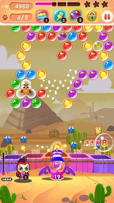 采用全新的UI设计,以Q萌的画风为主,精致的画面,唯美的音效,让你爱不释手!秉承传统玩法的同时,这款泡泡龙又对游戏进行了创新改造,独特的关卡设计尤为突出哦~后续还会开启更多地图关卡。考验你的时刻来了! 游戏特点: 1.首个版本总共有100个有趣的关卡,百玩不腻 2.提供4个过关道具,2个辅助道具,帮助玩家降低难度 3.独有的宠物技能升级系统,每个宠物自带加分通用技能和独有的过关技能 4.QQ登录功能,更换手机设备,关卡记录,购买道具数据信息随机迁移