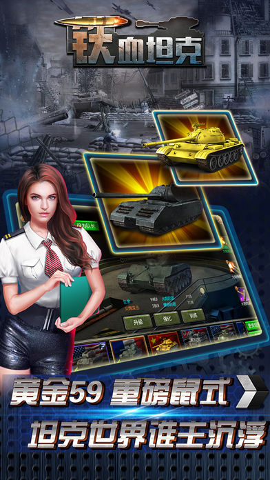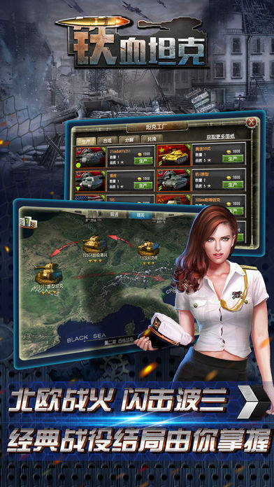 2017军事游戏重磅大作《铁血坦克》全球震撼发布!千万游戏玩家的不二选择,打造掌上的坦克帝国! 二战铁粉绝对不容错过!全超清画质制作,高精度真实还原中、美、德、苏、法、英、日七国百余款二战坦克,带你进入真正的坦克世界! 重回二战战场,体验经典战役,感受战斗快感,在炮火的洗礼下成为真正的王者!从波兰开始,历史由你改写!用坦克肃清一切,用坦克称霸世界! 登录就有经典虎式坦克保驾护航,第二天便可领取超级潘兴,一周即可获得稀有黄金59!15天还有超级黑市币让你任选重磅鼠式、E100、查迪伦25t等霸气橙色战车,战力爆表不是梦! **重谱二战历史** 三大阵营鼎立,二战坦克完美重现,中、美、德、苏、法、英、日七大国家百余款二战知名坦克由你掌控!身临1939,一切由波兰开始,波 兰闪击战、巴巴罗萨行动、阿拉曼战役一切经典尽在《铁血坦克》,史书将由你改写! **打造最强坦克战队** 百搭战车配件、尖端科技辅佐,超强坦克随意养成,提升战力碾压敌军!坦克训练、配件改造、研究科技,360度全方位强化坦克不拔头筹不罢休! **超真实战争体验** 物理引擎打造超一流战争画面,全方位感受钢铁巨兽的力量,未能荣耀参军?未能征战沙场?在这里一切愿望将得到满足,体验真正的坦克战争,感受坦克碾压一切的力量! **多样玩法全新体验** 攻打补给线、突袭兵工厂、挑战多拉巨炮、抢夺军备、保卫战……多样玩法让你个欲罢不能,根本停不下来!加入军团更有军团BOSS供你挑战!更可在竞技场、阵营战中与他人一决高下! **丰富豪礼** 登录就有经典虎式坦克,一周领取黄金59!福利活动不间断,每天登录送大礼!任务奖励超丰富!金币,原油,钻石,超级坦克疯狂送,你还在等待什么?!快来领取你的奖励! 【联系客服】 如果您在游戏中遇到任何问题,或是想要提供宝贵的游戏建议,可以随时与我们的客服人员进行联系! 官方客服QQ:784671341 客服邮箱:784671341@qq.com