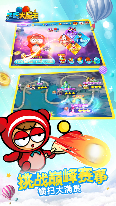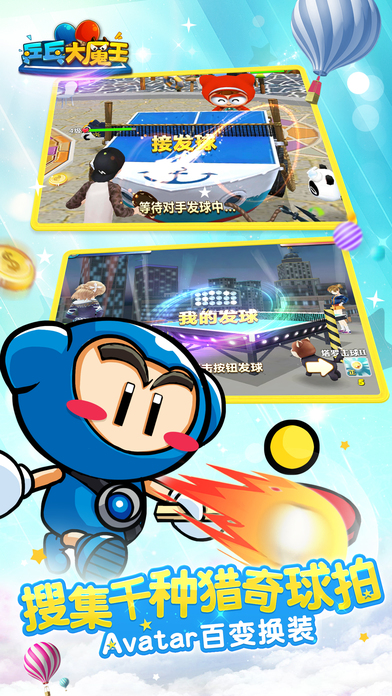 【游戏介绍】 《乒乓大魔王》是韩国Bridea Smart公司开发的休闲体育类国民手游。 该作品以中国“国球”乒乓球为核心玩法,具备实时对战的竞技性,也兼具了休闲操作的娱乐精神, 游戏还适用了中国玩家熟悉的休闲RPG成长模式,并添加了剧情挑战等多种模式玩法。 Nexon14年经典游戏形象,宝宝皮蛋回来了,N社这一波童年的泡泡回忆我要续! 泡泡系列第四弹来啦!宝宝皮蛋陪你玩转乒乓世界! 14年前,它是令人魂牵梦萦的海盗船鏖战…… 11年前,它是至今仍然风靡全球的《跑跑卡丁车》…… 6年前,它是扛起武器向前冲的泡泡战士们…… 此时此刻,它是承载国球精神,娱乐至上的《乒乓大魔王》! 泡泡系列,从不是一个游戏,它是童年,是友情,是回忆,是青春! 【游戏特色】 13年经典游戏形象,跑跑卡丁车兄弟手游 实时PK,球技比拼,原汁原味的乒乓对战 挑战巅峰赛事 ,横扫大满贯,化身大魔王 超级必杀技引爆全场,挑战中日韩最强高手 搜集千种猎奇球拍,玩不厌的Avatar换装 【联系我们】 乒乓大魔王官网地址:http://pp.tiancity.com/ 乒乓大魔王微信公众号:pingpangdmw 乒乓大魔王官方QQ群:570182795