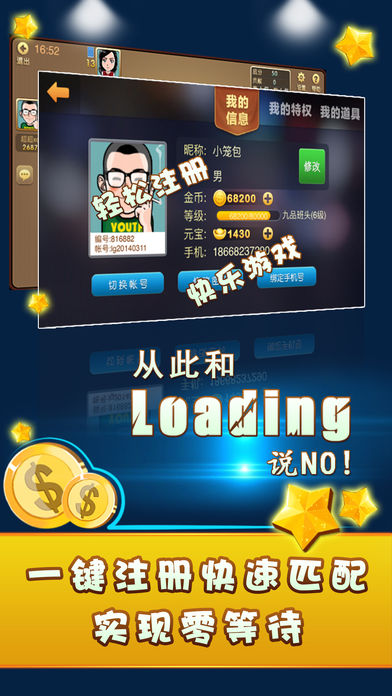 这款双扣,光是背景音乐,就能让你听一天! ※警告!!! 下载前请穿好防弹衣,小心被炸弹炸飞! ※注意!!! 全球最好玩的双扣游戏,仅限高智商人群下载! 【游戏特点】 1、欢乐畅玩双扣,真人联网好友约战。 2、酷炫精美动画,极致逼真音效。 3、百变火拼玩法,快到我碗里来。 4、语音互动在线,共享欢乐时光。 5、超低流量手游,畅享掌上双扣。 6、一秒注册,畅玩不停;快速配桌,告别等待。 【游戏说明】 一款流行于浙江地区的棋牌游戏,两两配合“跑得快”。经典百变模式任君挑选。更多炸弹,更多翻倍,更多贡献。最原汁原味的双扣经典规则,打造最具影响力的手机双扣。 隐私政策:http://policy.pj579.com/ 商务合作:support@bookse.cn