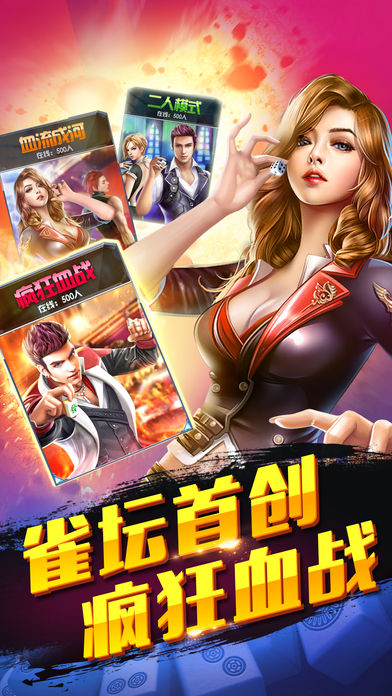 *国民第一麻将游戏全集! *首款3D效果美女真人在线麻将游戏! *天天免费赠送海量金币,还有大奖等你来拿! 游戏特色: 1、全新3D效果的麻将手游,画面精致、唯美逼真,彷如身临其境! 2、汇集目前最火热的血流成河、二人模式、大众麻将等潮流玩法! 3、特色装备系统,好看更好玩,助您大获全胜,享受酣畅淋漓的竞技体验!