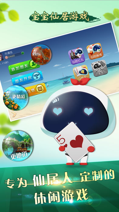 应用描述: 本地人都在一起玩的家乡味游戏平台。打牌、约战,足不出户,动动手指就能分享快乐。 简单快捷的游戏体验,保护个人隐私。 无须注册,直接进入游戏,游戏内容100%免费开放。 真人玩家,实时互动 地方比赛的游戏擂主云集在线,真人玩家,水平高超,牌友互动,鸡蛋鲜花满天飞。 多款游戏免费畅玩,总有你想玩的。 多款精品棋牌游戏合一起,总有你想玩的。 手机在线随时随地加入牌局,获得丰厚大奖。 联系我们 QQ交流群:516810792 客服QQ:98742279