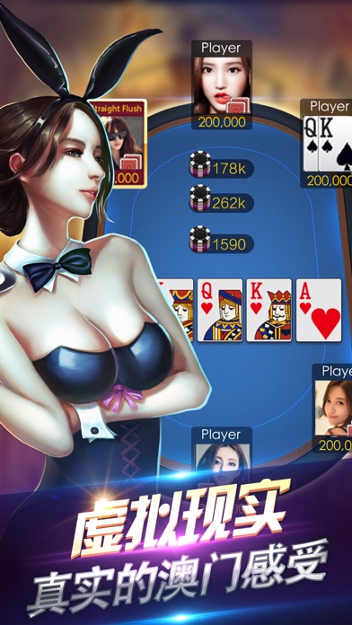 德州扑克大师俱乐部,粉丝必备! 天天大奖赛,万人在线PK,超多豪礼等你来拿! 游戏特色: 1,登录就送大量游戏金币,玩牌更能获得土豪大奖! 2. 玩法丰富多样,经典玩法、懒子玩法。还有更多其它小游戏刺激惊险,爽翻天! 3. 游戏画面精美简介,豪华的视觉体验,真实的拉斯维加斯感受! 4. 专业顶尖的防作弊系统,让你感受公平,公正,公开的高手对决! 5. 单手操作,让你无时无地都能畅玩PK,还有真人美女陪你来玩。