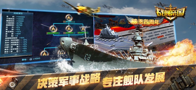 《战舰帝国》作为跨时代海战手机游戏经典大作!荣获2015 年“金翎奖”,该奖享有游戏界“奥斯卡”的美誉 2018年,《战舰帝国》四周年资料片上线,诠释你从未经历的峥嵘海战! 传奇名舰,高度还原!二百多艘名舰集合待命,潜艇、航母、战列舰、驱逐舰、巡洋舰等等各色战舰一应俱全,集群冲锋无可匹敌! 冠军联赛登场,上百军团混战厮杀;改装系统开放,爆表战力,谁可匹敌? 纯正海战,酣畅厮杀,体验制霸太平洋的快感; 每日签到,获得丰富钻石、金币、原油等奖励; 每月签到,领取珍稀游戏道具; 幽灵船探宝、招财猫、限时战舰等限时福利活动,每月不间断; 任性丰富福利活动每日上演,还有娇美舰娘与您为伴,共享欢乐时光!…