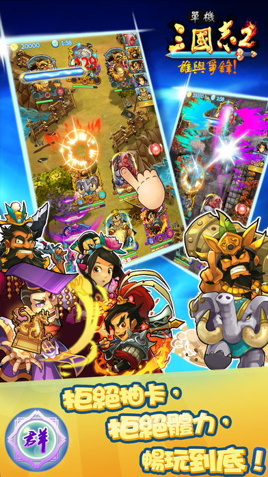 遊戲特色: 1)技能組合,蓄力技能,技能打斷,策略玩法大升級! 千種技能組合搭配,前排後排,左中右排站位,多變的玩法,操作和策略。 2)合體技! 痛快淋漓的合體技系統,簡單刺激的觸發方式,給您前所未有的戰鬥體驗。 3)六大職業系統! 六大職業,六大天賦,職業定位更加明確,玩法更加多變。 4)三大模式! 故事,自由,挑戰三大經典模式,等您來戰。 5)三線劇情! 全新的角色造型配合全新的劇情,給您不一樣的三國故事體驗。 ※ 注意:如刪除該應用時,遊戲內的所有數據也會隨之被刪除,且不能恢復,請注意! ※ 如有任何問題和建議,可到Facebook上聯繫我們,我們一定儘快給您答覆!祝您遊戲愉快!