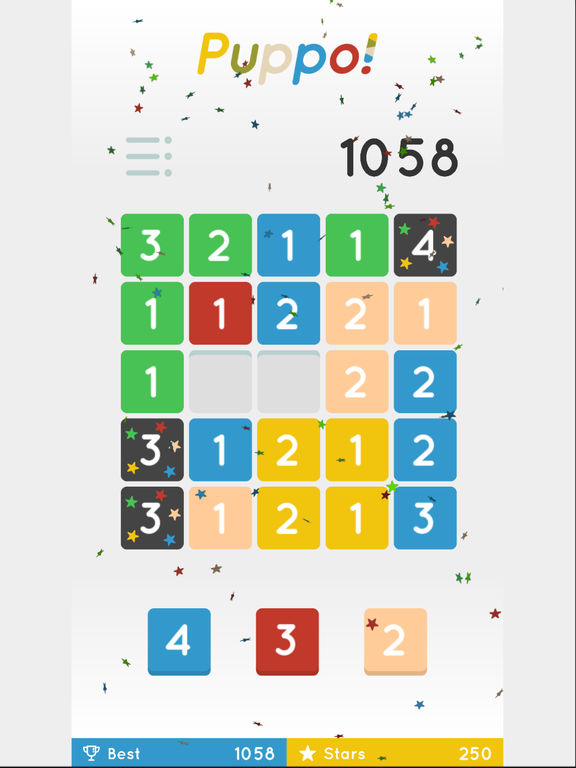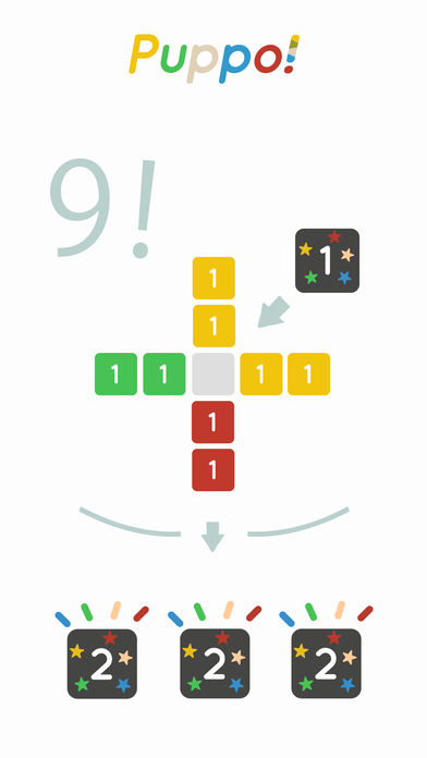 Puppo!是一个设计简单而富有挑战性,令人想玩完再玩,适合男女老幼的全新益智游戏。 游戏规则很简单。只要将同色同数字的3个颜色板,横向或直向连接在一起便可。颜色板的数字将会续渐增大。 如果想获得更高分数,只要同一时间连接多个颜色板,做出可与任何颜色连接的多色板。越多多色板越好,这个便是游戏的必胜伎俩。 然而,当再没有位置放颜色板时,游戏便会结束。 如果太贪心,更有可能成为祸根......? 游戏的设计简单,但需要动动脑筋,是一个具有挑战性的益智游戏。 设有中断游戏的功能,也没有时间限制,玩家可以放心按自己的节奏玩。