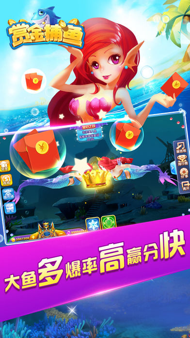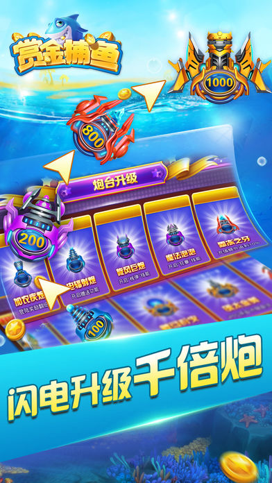 《赏金捕鱼》震撼登场,彻底刷新您对捕鱼游戏的认识! 大鱼多!爆率高!赢分快! 诚信安全!完全杜绝骗分情况! 闪电升级炮倍!一天内升级到千倍炮! 爽快感满点!完全还原街机捕鱼体验! 游戏特色 采用真3D技术,画面更为精致细腻,相信捕鱼游戏的达人们都能在游戏中找到街机玩法的经典回忆! 小鱼钻石爆率超高,大鱼和BOSS更好杀,获取钻石升级炮台,人人都可升至10000倍炮! 击杀彩金鱼累计可摇奖,多种福利玩的爽,高倍率出金币,享受皇室至尊捕鱼乐趣!