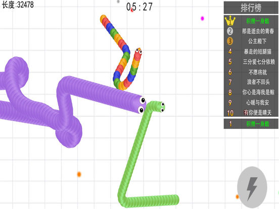 还记得经典的手机游戏《贪吃蛇》吗?现在已经华丽升级啦! 只要你够灵活,你可以越来越长,最长的蛇蛇是你吗?来免费玩玩看吧 刚出生你只是一条小蛇,不断的游走。吃掉路上的豆豆,越变越大 注意,蛇蛇的头部不可以碰到别人哦,别人如果碰到你的身体,也会碎裂的 吃的越多,长的越长,来加入吧,一起踏上蛇蛇的强者之路吧!