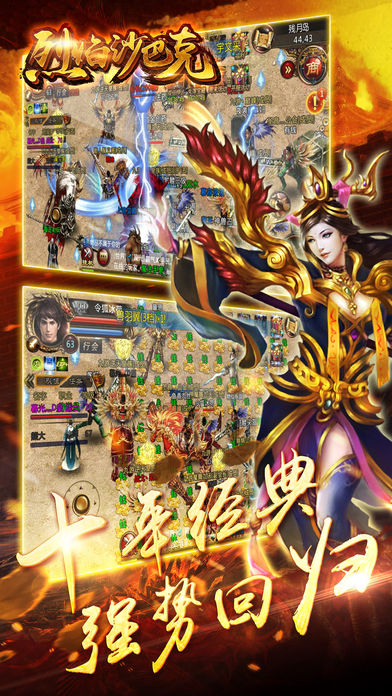 经典传奇手游《烈焰沙巴克》震撼发布,叫上兄弟们,一起再聚沙巴克! 游戏继承了“传奇”的核心玩法,延续了传奇游戏的经典设定; 全民PK,千人攻城,王者霸业,征途天下; 无论是酷炫套装,还是野地同屏PK,都会让大家重温经典传奇; 《烈焰沙巴克》霸道登场,谱写传奇。 【游戏特色】 1. 回味经典 屠龙裁决 保留传奇经典的玩法,海量霸道装备,一夫当关,万夫莫开。 2. 画面清晰 操作流畅 高精技术打造,最清晰的画面和最流畅的战斗体验。即使千人同屏仍然进退自如!华丽装备、炫酷技能,随你秀! 3. 千人同屏 再聚辉煌 自由切换战斗模式,单挑团战随心所欲!参加千人团战,体验经典的乐趣,再创兄弟们的辉煌! -------游戏特色------- 1、写实画面,经典重现 2、即时PK,再创兄弟联盟 3、超酷炫必杀,PK爽快 4、万人攻城,王者争霸 ------众多兄弟,等你来战-------