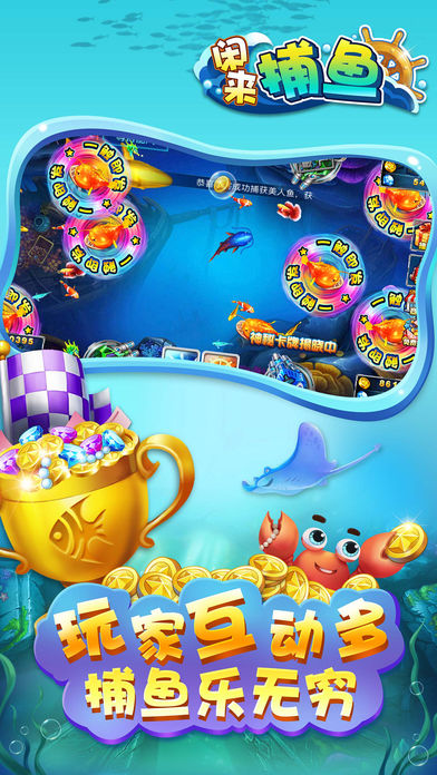 闲来捕鱼是一款多人联网实时对战的休闲类手机游戏,强调极易上手与欢乐流畅的游戏体验,通过梦幻深邃的海底场景、自然精致的鱼群刻画、华丽爽快的捕鱼画面、创意无限的玩法设计、诚意十足的各项活动,使玩家仿佛置身童年幻想中的游乐场中尽情娱乐。 【游戏特色】 1.3D画面,海底探险身临其境 2.经典捕鱼,千炮金币爆不停 3.深海争霸,实力较量赢大奖 4.好友共聚,高额红包齐分享 5.百万惊喜,海量金币免费领 超嗨超刺激,快来一起领略真正的海底世界吧!