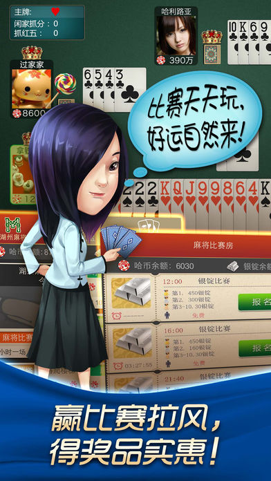 ▶湖州麻将、湖州红五、三扣一、牛牛、十三道、红十、长兴麻将、长兴比鸡、长兴中心五、斗地主、德州扑克想玩什么就玩什么 ▶湖州麻将、长兴麻将决战飞英塔新奇刺激爽歪歪 ▶本地名角地道湖州话配音 【产品介绍】 湖州人茶余饭后喜欢在棋牌室喝茶搓麻将,打老K。哈狗游戏着力打造一个老湖州人的线上棋牌室,让你足不出户就能够享受打牌的乐趣。《哈狗湖州3缺1》(三缺一)中包含了湖州麻将、湖州红五、三扣一等多个浙江本土棋牌游戏。《哈狗湖州3缺1》(三缺一)湖州麻将决战飞英塔的新玩法;每天不同时段开放麻将、红五、三扣一的比赛房,参加比赛更有机会赢取免费吃喝欢乐机会。有这么多好玩的,还有免费吃喝,你能不心动吗? 【产品特色】 1、同城竞技真人对战,秒配牌桌无需等待。 2、传统游戏经典玩法,好友语音边玩边聊。 3、麻将比赛赢得银锭,免费尽享吃喝玩乐。 【更多精彩】 1、好友随时随地随心开房,还能一键查看账单信息。 2、参与比赛得银锭可兑换各类美食休闲娱乐券。 3、麻将登顶飞英塔还有机会带走海量哈币奖励。 4、游戏房间语音聊天功能,让你玩得尽兴聊得开心。
