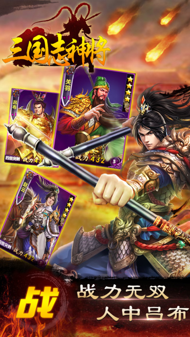 三国攻防战略手游《三国志神将》,上万玩家一起攻城战,上至军政、经济, 下至民建、税收一手掌控!推城池抓名将,欢乐多于斗地主, 州郡掠夺、城池驻守轻松上手!骑、盾、枪多兵种厮杀,更有上百名将任你驱策! 【资源争夺 据点攻防】 以战养战 资源争夺新模式 攻城守城 兵临城下斗策略 即时动作遇见策略塔防 让策略游戏更激烈! 【真人对战 平衡匹配】 全球跨服匹配 智能平衡配对 战争游戏 就要以人为本 拒绝机器人 要打 就来真的! 【名将对垒 沙场炫技】 精美卡牌绘制 尽显名将风采 超炫骨骼动画 爽快打击感 独创兵卒智能系统 让战斗更爽快! 【女神主播同服】 和女神主播尹素婉一起跨服征战! 赶紧来吧,错过要再等两年!
