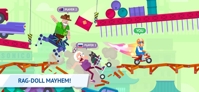 HAPPY RACING is a rag-doll physics-based game with many inadequate characters trying to reach the finish line. Choose your sick racer and start the chase for VICTORY NOW! Expect SUPER COOL RAG-DOLL PHYSICS, loads of extraordinary vehicles! TONS of levels, which will be updated every month! And SHEE…