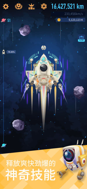 哪怕再忙碌的人,也会在深夜抬头仰望星空,渴望探索未知的宇宙。随着地球文明的飞速发展,我们走过蒸汽时代,工业时代,跨入了科技时代,可是美丽的地球母亲却变得越来越糟糕。烟雾弥漫,土壤沙化,物种灭绝等等问题层出不穷。也许是时候去寻找另外的栖息之地了!宇宙如此浩瀚,说不定还有可以让人类生存的星球呢?勇敢的人啊,为了全人类的幸福去冒险吧! 这是一个超级轻松的休闲挂机放置类游戏!不需要动脑就能玩!动动脑就能玩得好! 在这个游戏里,你可以: * 进行激动人心的宇宙飞行 * 升级先进时尚的宇宙飞船 * 释放爽快劲爆的神奇技能 * 探索多种多样的神秘星球 * 收集千奇百怪的外星生物 *和朋友一起在联盟中升…