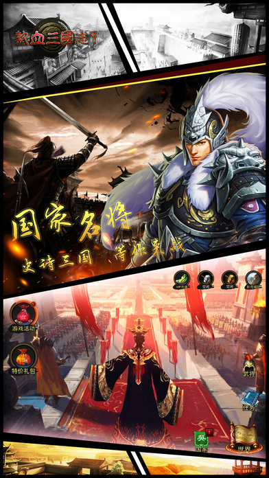 天下大势合久必分,分久必合。 顺我者昌,逆我者亡。生死国战,各看神通。魏蜀吴争锋,三国只存一。数千城池,看全国领土动荡起伏;万计精兵,数百军英雄挥刀舞剑。狭路相逢勇者胜,不在烈火里死去,就在战争中崛起。 “运筹帷幄,决胜千里” 经略九州,剑指天下。从个人军事策略、内政发展、资源分配,到国家角度统揽全局,联合纵横、远交近攻,谁能登顶三国最强谋士?卧龙、周瑜、郭嘉,还是穿越的你? “良臣武将,乱世枭雄” 烽火国战,无双上将!骑兵营前锋,步兵营中军,环环相扣,兵种互克对抗!勇将如云,精兵如沙,排兵布阵,你就是最高统帅!
