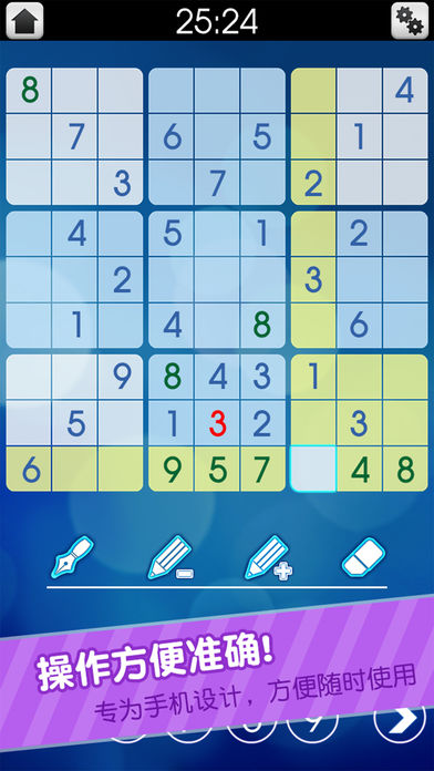 超好用数独应用,数独能力提升! 海量高质题库,保证唯一解 人性化操作模式,方便高效 丰富辅助功能,帮助你解决难题 *标记功能。手机标记不方便?超级便捷,帮你理清思路。全部标记和手动标记,随你选择! *存档功能。题目做到一半被打断?轻松保存,随时读取继续,再也不怕被外界打断! *纪录功能。之前解过的题目思路不对?轻松找到过往记录,换个思路重新挑战! *检测功能。推理过程发现矛盾?检测功能告诉你哪里出现问题。再也不用全部重来!!! 无论你想练习解题技巧还是想要挑战速度,都是你最好的选择。 无尽的高质量数独题目,绝不重复!绝对唯一解!根本停不下来! 划分多个难度,无论是初学者还是超级高手,在这里都能找到你想要的题目。 快来,拿出你的全部实力,向所有玩家展示你的数独技巧!!! 题目高质量!功能超全面!初学者的学习工具。高手的挑战对象!
