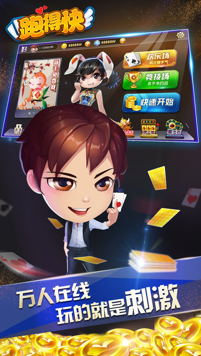 朋友约局神器,随心安全私密! 你来就送房卡,亲朋好友搞起! 随时随地打一把,全凭运气! 红包随心送,金币话费卡等你拿! 欢乐升级,下载就送百万礼包! 万人在线,好友比拼谁跑得快! 【玩扑克不用学,就玩跑得快!跑得快又称为关牌、锄大地、争上游、掼蛋,是最常见易学的扑克玩法。】 【跨平台挑战:连通电脑和手机平台,是玩家最多的棋牌游戏。想挑战跑得快之神吗?就玩白金岛跑得快,还有机会上电视节目哦!】 【微端手游省电省流量:免费下载,流量低,长途旅行必备神器!】 【显牌先出,每局游戏拿到特殊显牌的玩家,先出牌。】 【有牌必打,手中有能够大过的牌,就必须要打出。】 【全关翻倍,牌局结束时一张牌未出的玩家全关,失分翻倍。】 【炸弹赢分,出炸弹时,可按照房间倍率立即获得10倍积分。】 【跑神必备神器:记牌器,让你轻松把握牌局走势,给你的大脑减减负。】