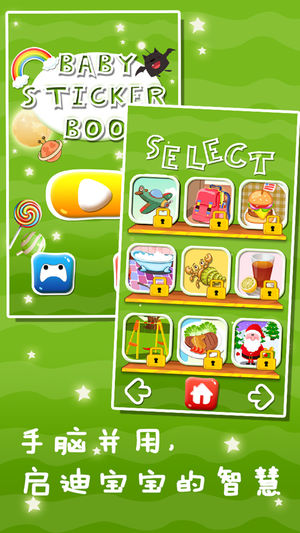 宝宝们在认知力和视觉辨别上有所迟缓,父母如何帮助孩子加强训练?玩贴纸游戏,是简便而有益的好方法。 《宝宝贴纸书》推荐年龄2-5岁。简单的操作,有趣的创意,重点在于培养他们自由、自主思考的热情和能力,寓教于乐让每个宝宝快乐成长。 丰富的色彩,可爱的画风,是非常适合2~5岁宝宝的游戏,我们选择这个学前阶段,重点放在儿童启蒙阶段的智能开发和培养上,在科学地引导下,以入学知识准备、脑力开发、创意学习、思考练习、动手能力五大部分为主要体系,双语发音,近三十个个不同的场景,孩子们可以在玩游戏的过程中认识位感知这个世界。可爱的动画形象、科学的幼教内容,可以让孩子在轻松愉快的阅读环境中实现智力开发…