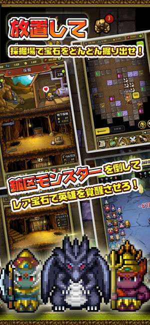 放置x冒険!新感覚のドット絵冒険RPG! 【ストーリー】 ピクセル大陸には人族、魔族、精霊族、人魚族、神族とドラゴン族の6種族が生存している。6種族はお互いに侵すこともなく、平和に共存していた。 ある日、平和が破られた。この世界のバランスと正常な作動を維持しているエネルギー「エーテル」が不明な原因により漏れ、エーテル危機が爆発した。 静けさのなか各族の勢力がうごめき、戦争の火花は燃え上がっていく…… ■操作は放置プレイ: 難しい操作は不要、誰でも気軽に楽しくプレイできる! 放置のままで経験値、金貨、宝石などの素材がどんどん手に入る! あまり時間がかからず、自分のペースで楽しめる! ■個性…